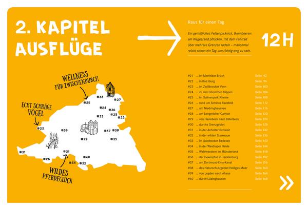 Draußen unterwegs zwischen Zwillbrocker Venn, Tecklenburger Land und Baumbergen. Ob wandern, radeln, paddeln oder in aller Ruhe die Natur genießen: 52 kleine und große Eskapaden machen Lust, die schönsten Ecken im Münsterland zu entdecken. Für wenige Stunden, einen Tag oder ein Wochenende - unwiderstehliche Ausflüge ins Grüne warten. Romantische Wasserburgen erobern, unendliche Pättkes erkunden oder verwunschene Seen umrunden - es ist so einfach, mehr zu erleben als das Bekannte. Also ab nach draußen!