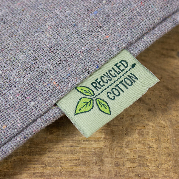 Der Beutel besteht aus strapazierfähigem Stoff aus recycelter Baumwolle. (Der Anteil an recycelter Baumwolle kann zwischen 90 und 100 % variieren.) Der Stoff ist circa 40 g/m² fester als gewöhnliche Baumwoll-Beutel und somit deutlich robuster. Auch die Nähte halten einen schweren Einkauf aus und wurden innen verkettelt.