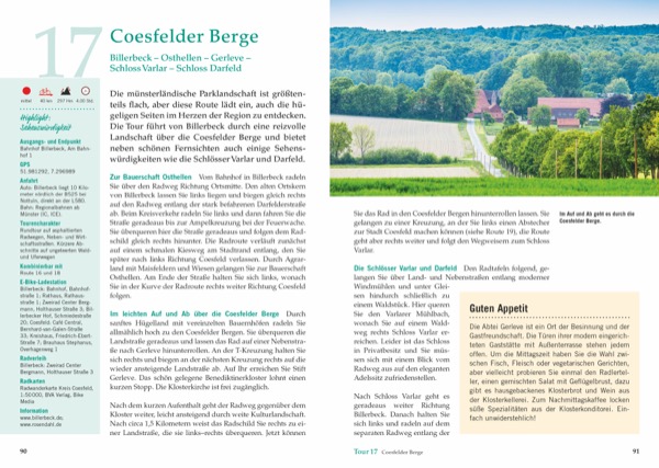 Erkunden Sie das Münsterland mit dem Fahrrad. Dieser Führer zeigt Ihnen alle Facetten der Region auf 30 abwechslungsreichen Tagestouren. Erleben Sie typische Münsterländer Bauernhöfe, Moore, Seenlandschaften und weite Felder. Cafés und Gasthöfe entlang der Fahrradrouten laden zu entspannten Pausen ein.