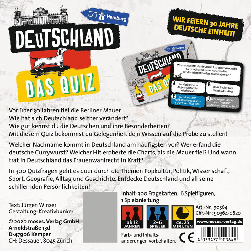 Neue Edition - 30 Jahre Deutsche Einheit - Deutschland feiert die Wiedervereinigung. Wer kennt das Land wie seine Westentasche? In 300 Quizfragen geht es quer durch die Republik: Sport und Politik, Wissenschaft und Popkultur, Geographie, Alltag und Geschichte. Wer sich hier was traut und viel über Deutschland weiß, hat die Nase vorn.
