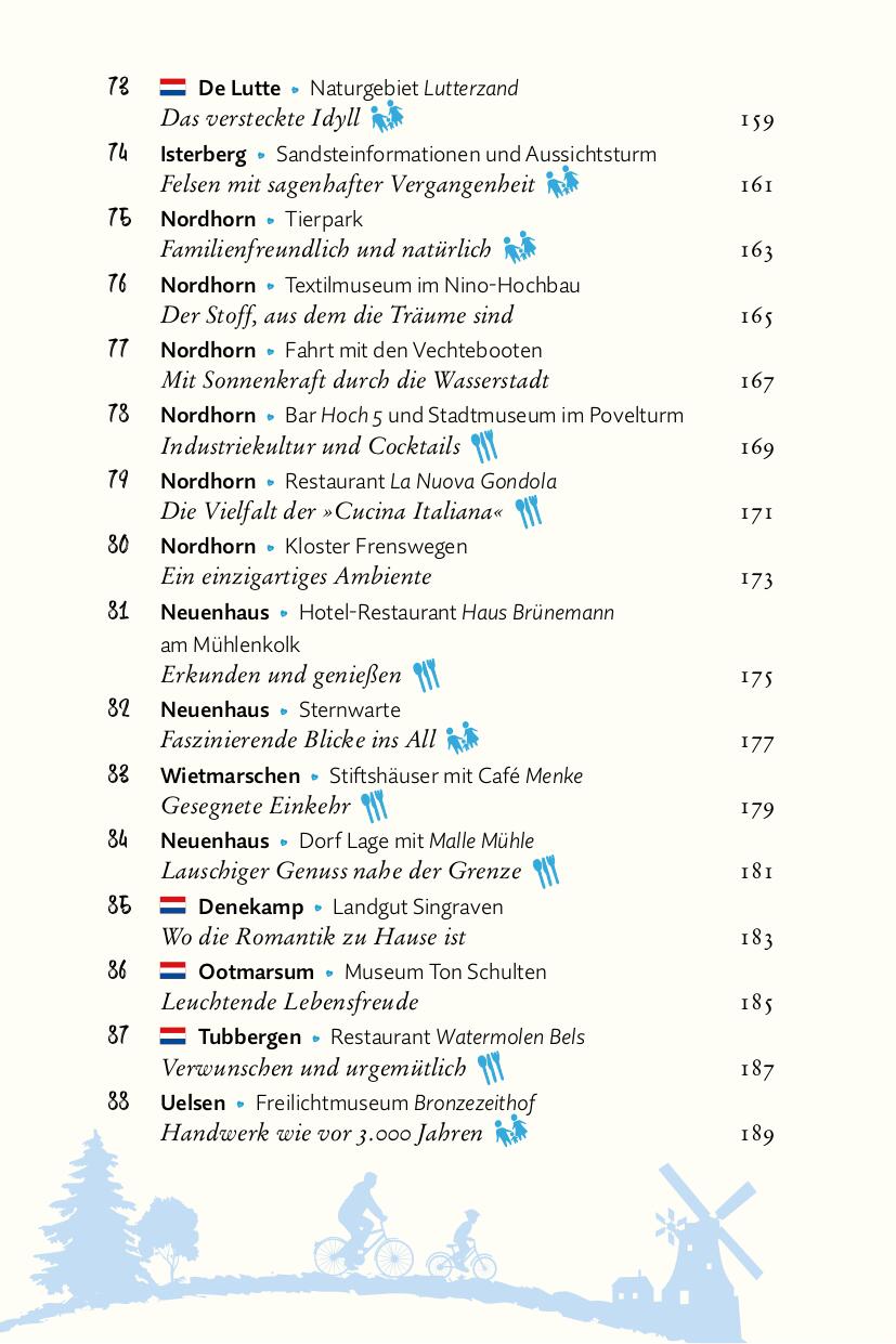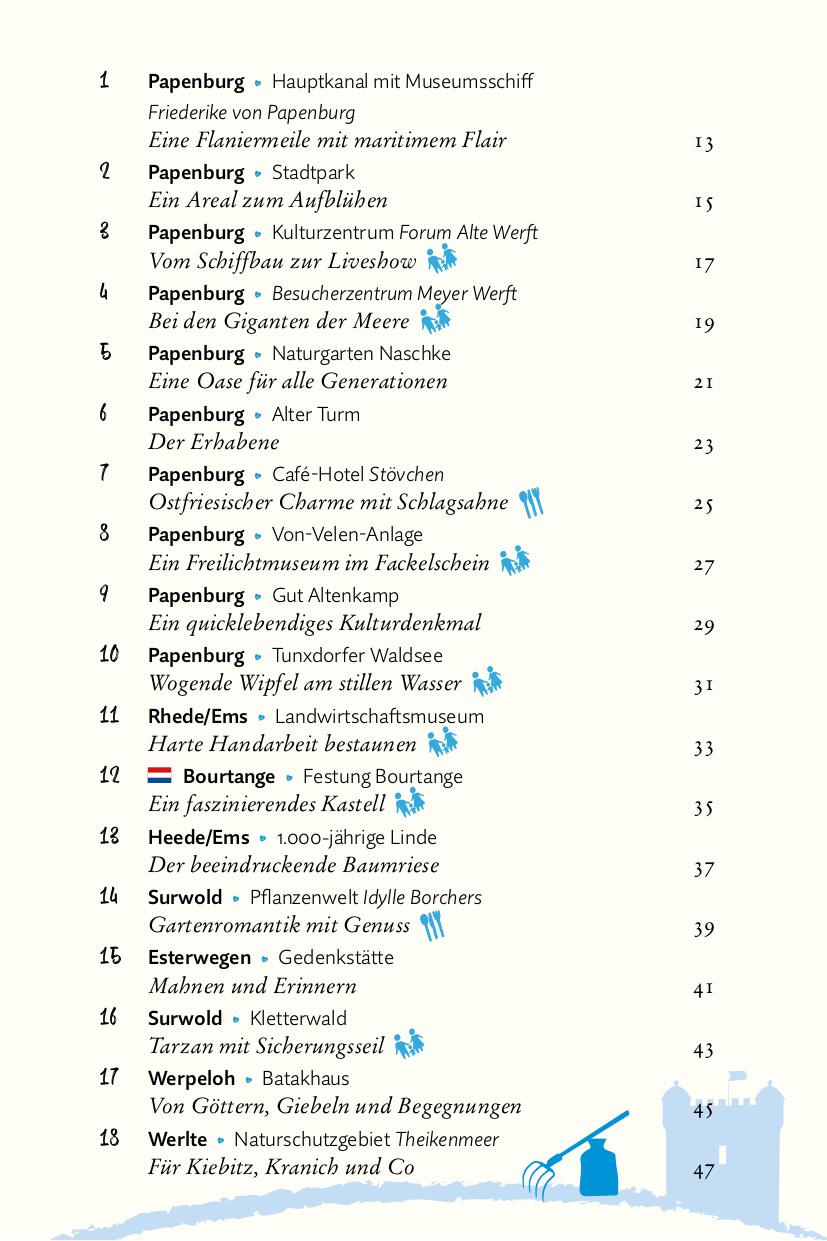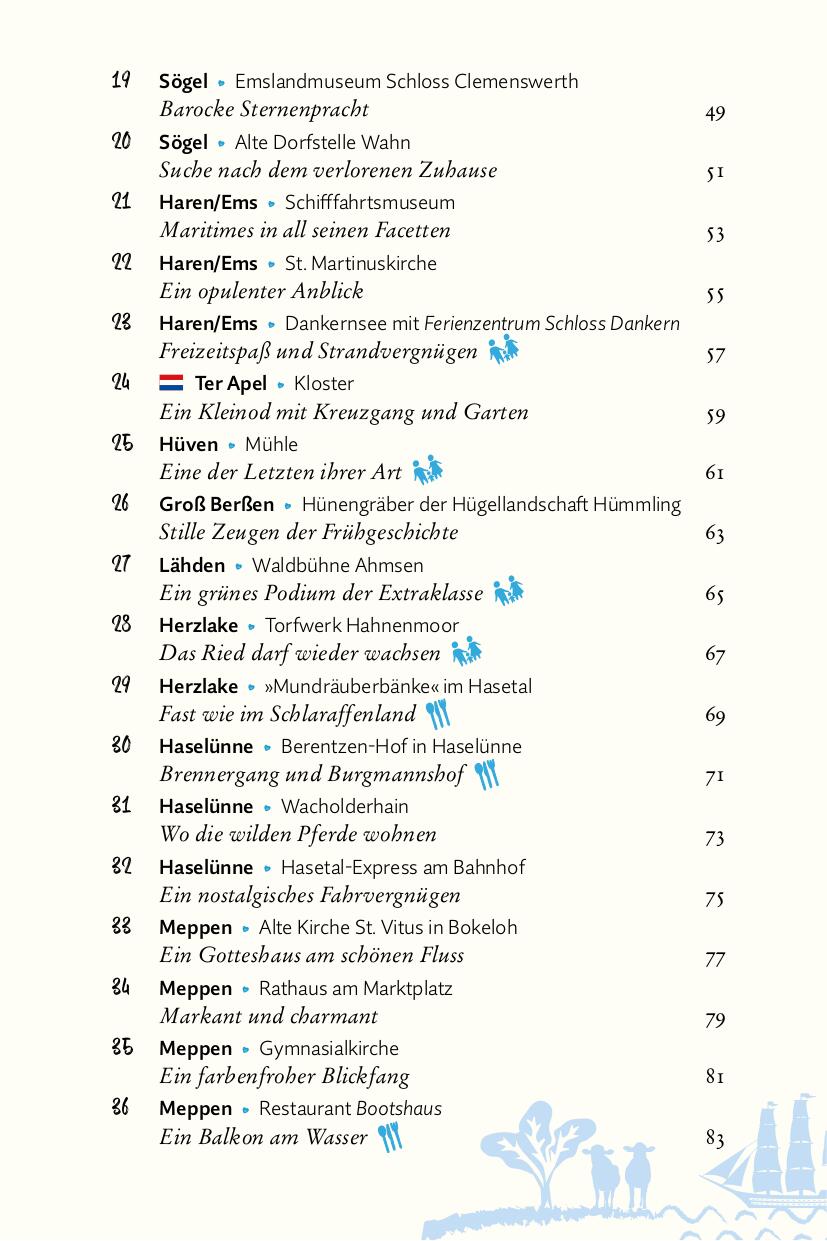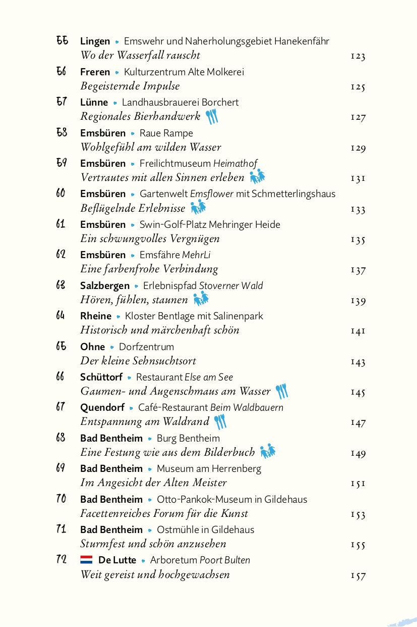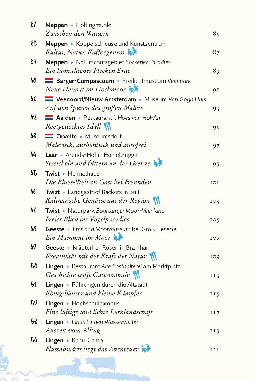 Endlose Weiten, stille Wälder und idyllische Wasserwege locken Naturliebhaber ins Emsland. Die Region birgt zudem zahlreiche kulturelle und kulinarische Juwelen. Treffen Sie auf einer Reise von Papenburg über Meppen bis in die Grafschaft Bentheim einen Kreuzfahrtriesen, bunte Schweine und ein Mammut im Moor. Klettern Sie in Surwold in die Wipfel, erkunden Sie mit einem Dampfross das Hasetal und trinken Sie in Lünne das einzigartige Emsländer Bier. Werden Sie Kapitän auf Ems, Hase und Vechte, und besuchen Sie Pfannkuchenbäcker sowie Vincent van Gogh in den Niederlanden!