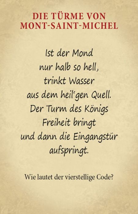 - Können die Spieler*innen das Geheimnis um den Schatz von Mont-Saint-Michel lösen?
